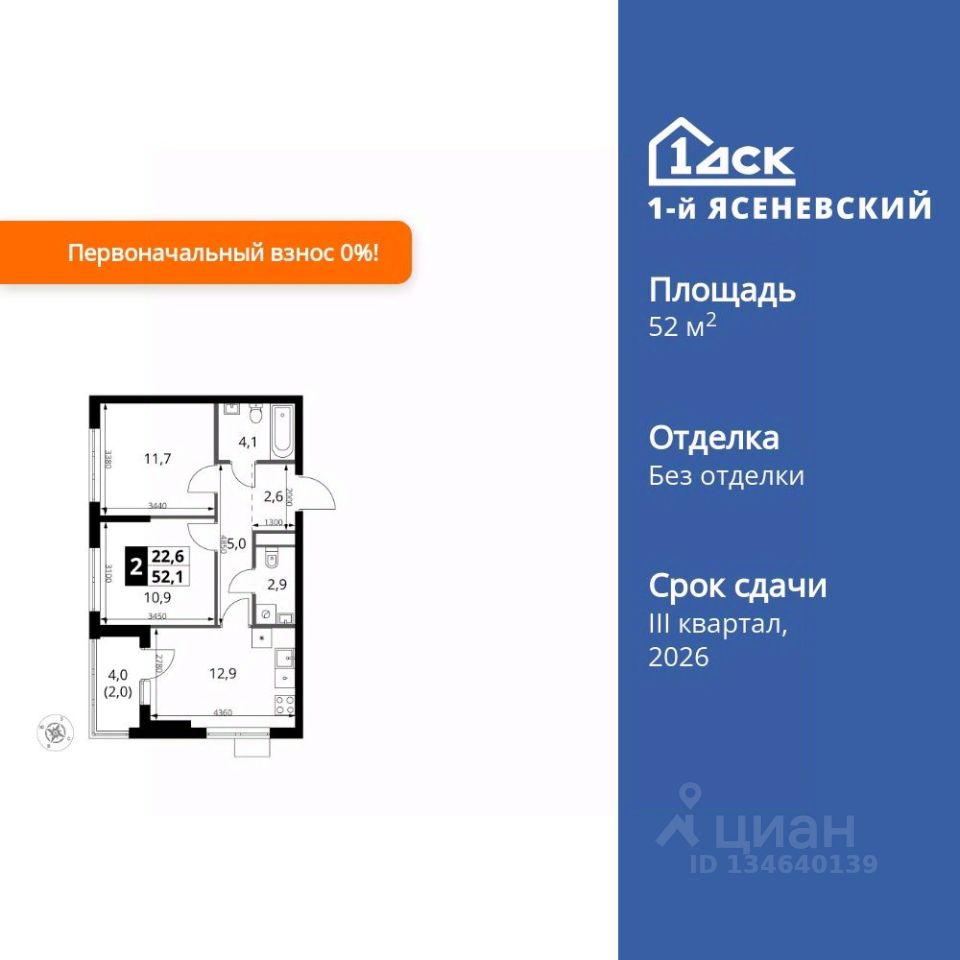 Продаётся 2-к квартира номер 742 общей площадью 52.1 кв.м. на 15-м этаже 16 этажного здания. Без отделки. Цена с учётом скидки.