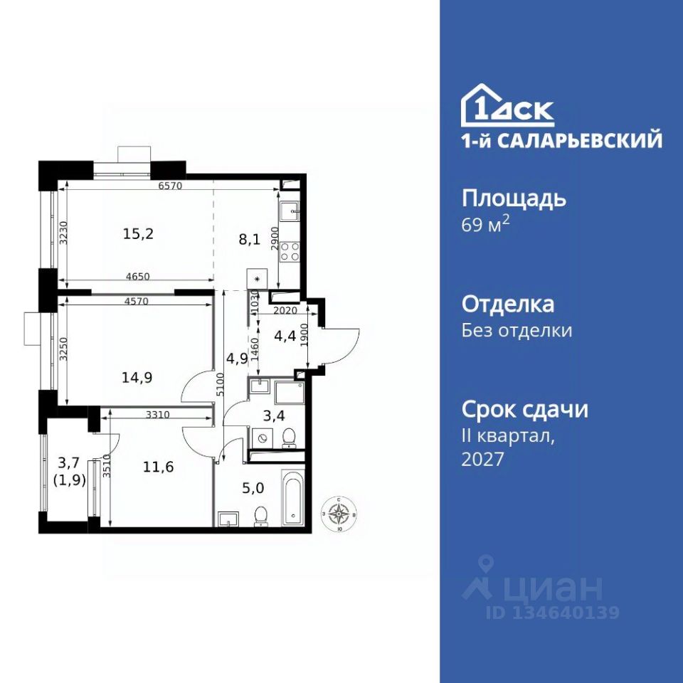 Продаётся 3-к квартира номер 355 общей площадью 69.4 кв.м. на 19-м этаже 25 этажного здания. Без отделки. Цена с учётом скидки.