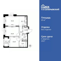 Продаётся 3-к квартира номер 229 общей площадью 69.4 кв.м. на 5-м этаже 25 этажного здания. Без отделки. Цена с учётом скидки.