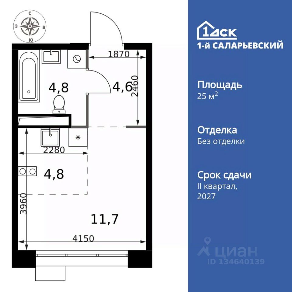 Продаётся квартира-студия номер 800 общей площадью 25.9 кв.м. на 24-м этаже 25 этажного здания. Без отделки. Цена с учётом скидки.