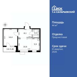 Продаётся 2-к квартира номер 274 общей площадью 44.3 кв.м. на 12-м этаже 12 этажного здания. Отделка Whitebox. Цена с учётом скидки.