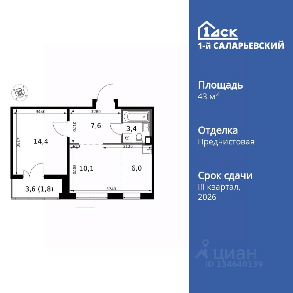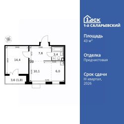 Продаётся 2-к квартира номер 524 общей площадью 43.3 кв.м. на 20-м этаже 24 этажного здания. Отделка Whitebox. Цена с учётом скидки.