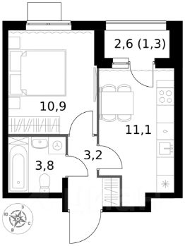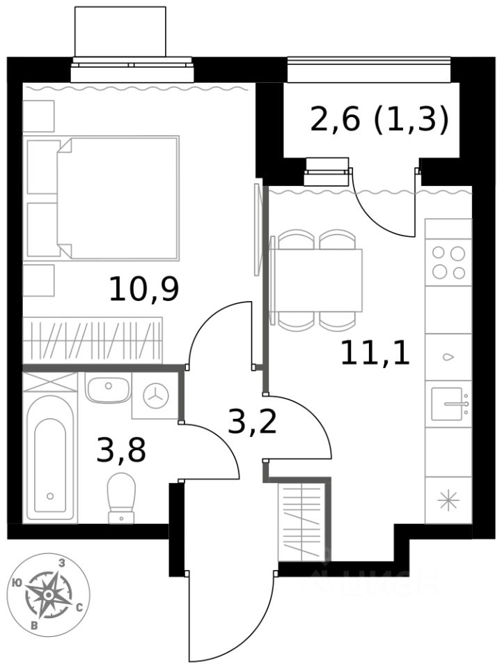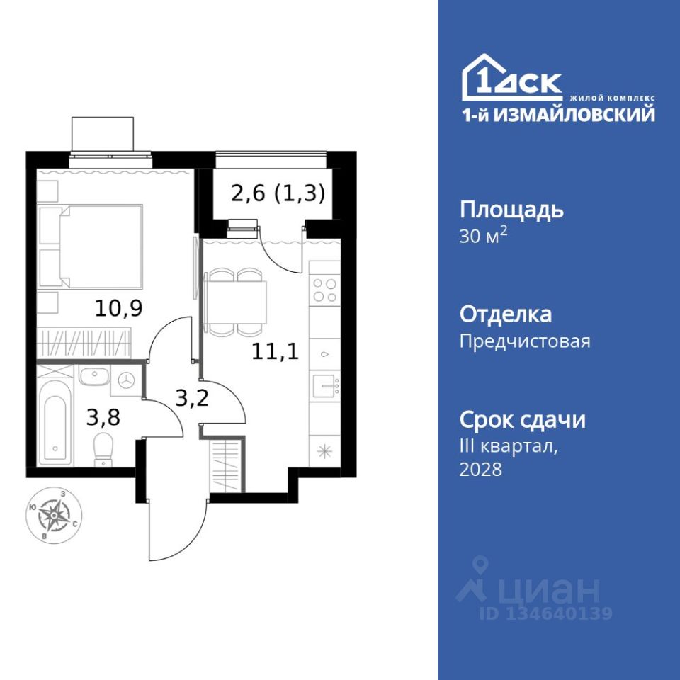 Продаётся 1-к квартира номер 923 общей площадью 30.3 кв.м. на 6-м этаже 25 этажного здания. Отделка Whitebox. Цена с учётом скидки.
