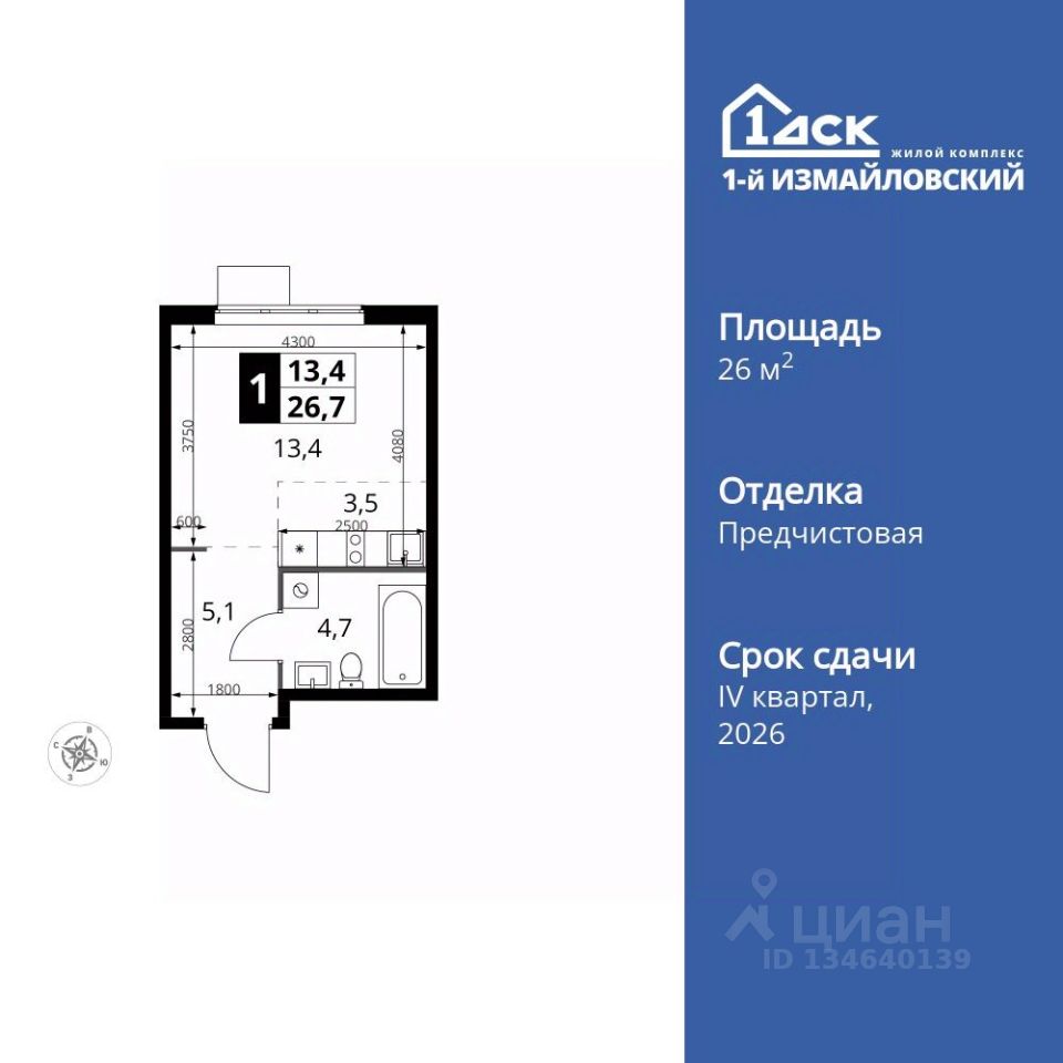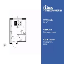 Продаётся квартира-студия номер 496 общей площадью 26.7 кв.м. на 19-м этаже 23 этажного здания. Отделка Whitebox. Цена с учётом скидки.