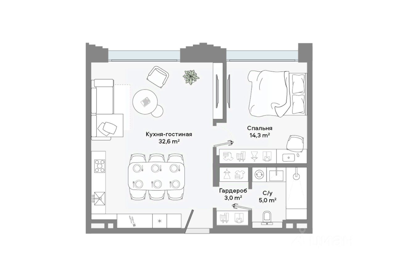 Продается Студия площадью 54,9 кв.м. на 6-м этаже 9-этажного Клубного дома CULT. Высота потолков 3,2 м.