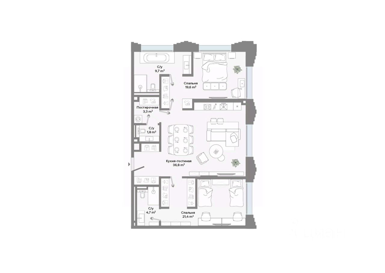 Продается 2-комнатная квартира площадью 97,3 кв.м. на 6-м этаже 9-этажного Клубного дома CULT. Высота потолков 3,2 м.