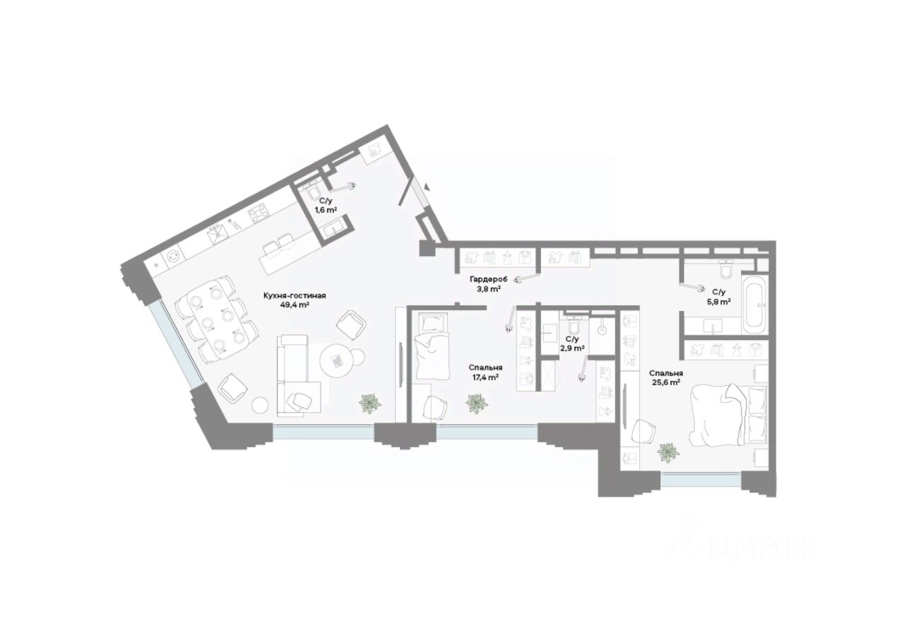 Продается 2-комнатная квартира площадью 106,5 кв.м. на 6-м этаже 9-этажного Клубного дома CULT. Высота потолков 3,2 м.
