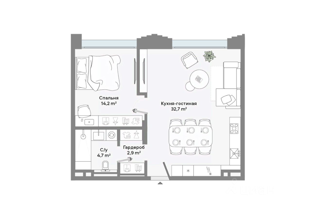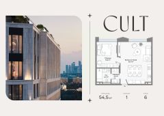 Продается 1-комнатная квартира площадью 54,5 кв.м. на 7-м этаже 9-этажного Клубного дома CULT. Высота потолков 3,2 м.