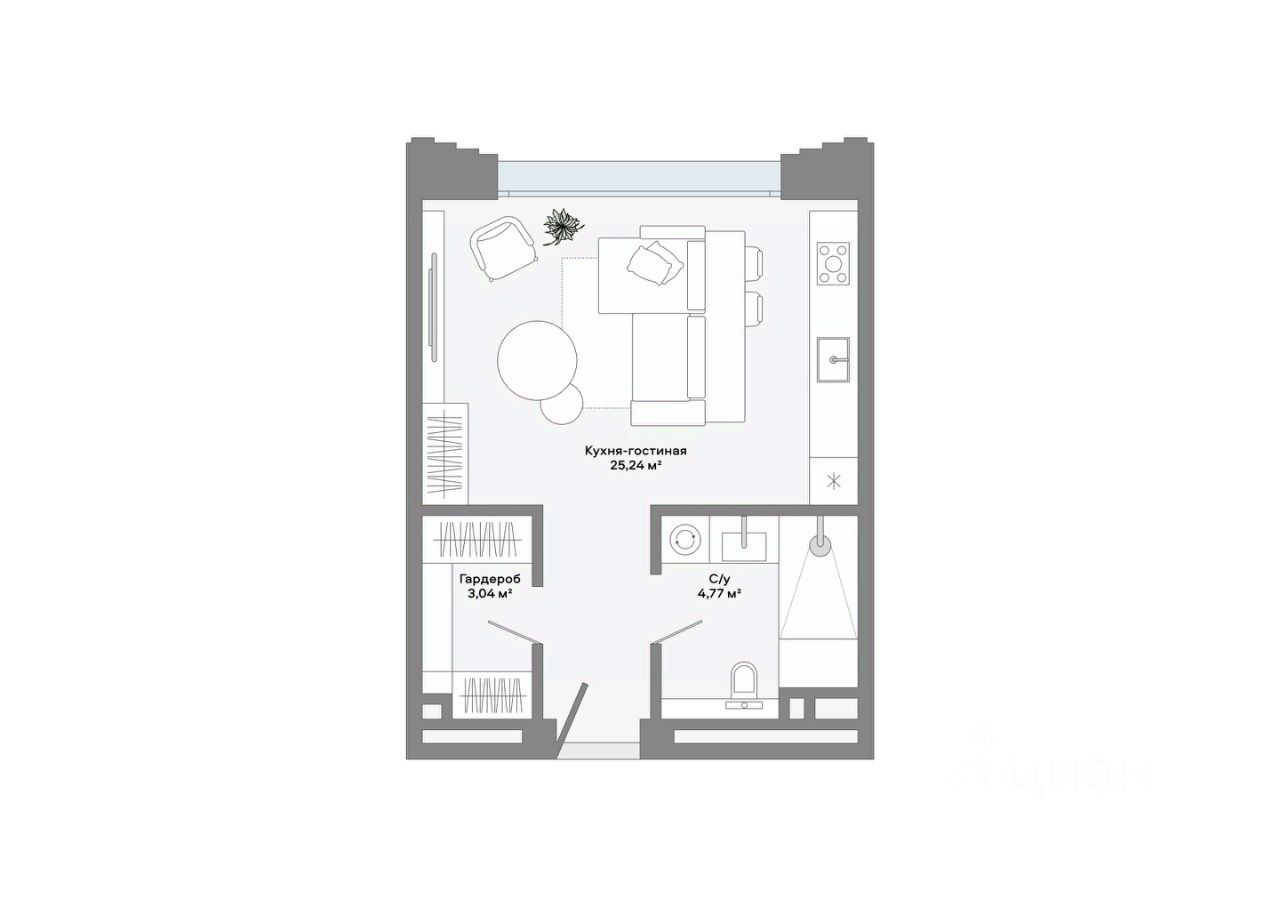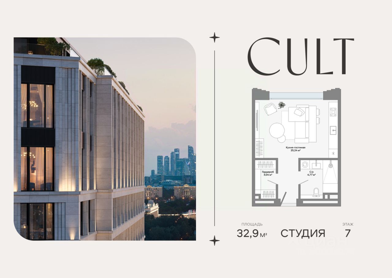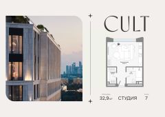 Продается Студия площадью 32,9 кв.м. на 7-м этаже 9-этажного Клубного дома CULT. Высота потолков 3,2 м.