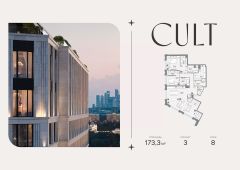 Продается 3-комнатная квартира площадью 173,3 кв.м. на 8-м этаже 9-этажного Клубного дома CULT. Высота потолков 4,5 м.