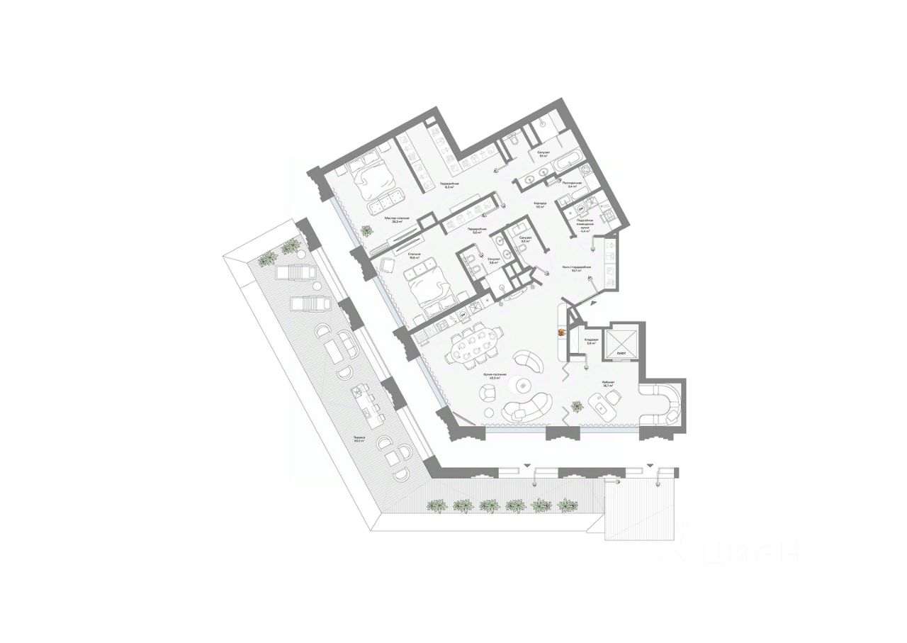 Продается 2-комнатная квартира площадью 203,6 кв.м. на 9-м этаже 9-этажного Клубного дома CULT. Высота потолков 4,5 м.