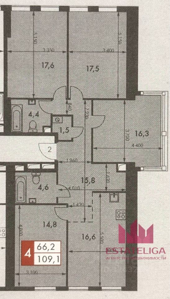 Id 58529. Продаётся четырехкомнатная квартира без отделки!