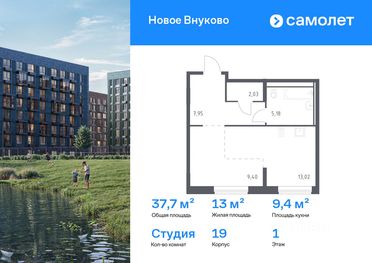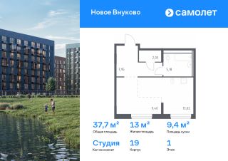 Строим кварталы для жизни с заботой о будущем. Предлагается квартира студия комфорт-класса 37,7 кв.м в корпусе 19 на 1 этаже, в ЖК "Новое Внуково"