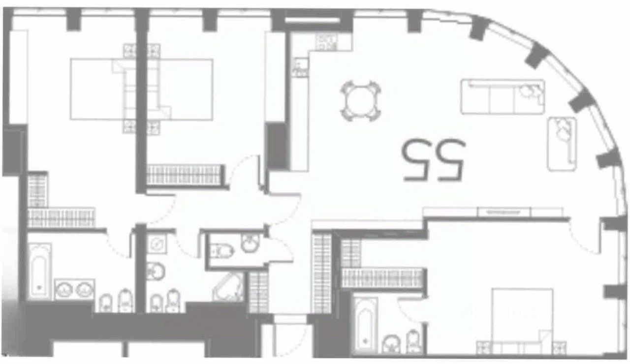 -Рекомендуемая конфигурация: кухнягостиная, 3 спальни, 3 санузла, гардеробные.