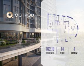 Продаётся четырехкомнатная квартира от застройщика: общая площадь 162.10 м², жилая 60.00 м², кухня 74.30 м², 14, жилой квартал "Остров 7", корпус 4 (7 квартал) (секция 1). срок сдачи: 4-кв. 2025.