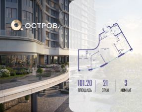 Продаётся трехкомнатная квартира от застройщика: общая площадь 101.20 м², жилая 40.30 м², кухня 35.50 м², 21, жилой квартал "Остров 7", корпус 7 (7 квартал) (секция 2). срок сдачи: 4-кв. 2025.