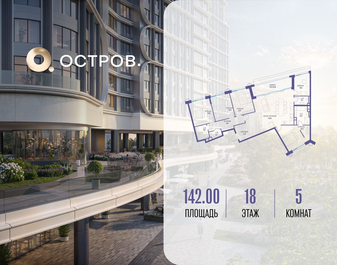Продаётся многокомнатная квартира от застройщика: общая площадь 142.00 м², жилая 64.70 м², кухня 43.60 м², 18, жилой квартал "Остров 7", корпус 7 (7 квартал) (секция 1). срок сдачи: 4-кв. 2025.