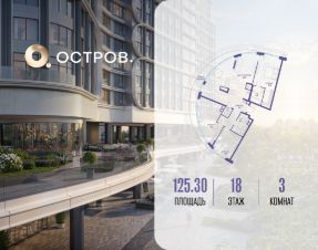 Продаётся трехкомнатная квартира от застройщика: общая площадь 125.30 м², жилая 53.90 м², кухня 42.90 м², 18, жилой квартал "Остров 7", корпус 7 (7 квартал) (секция 1). срок сдачи: 4-кв. 2025.