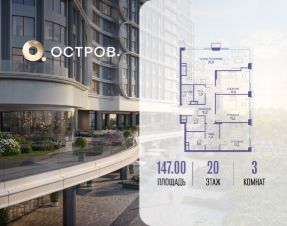Продаётся трехкомнатная квартира от застройщика: общая площадь 147.00 м², жилая 49.90 м², кухня 34.20 м², 20, жилой квартал "Остров 7", корпус 7 (7 квартал) (секция 1). срок сдачи: 4-кв. 2025.