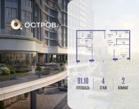 Продаётся двухкомнатная квартира от застройщика: общая площадь 91.10 м², жилая 26.00 м², кухня 35.80 м², 4, жилой квартал "Остров 7", корпус 3 (7 квартал) (секция 1). срок сдачи: 4-кв. 2025.