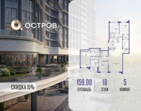 Продаётся многокомнатная квартира от застройщика: общая площадь 159.00 м², жилая 56.10 м², кухня 37.10 м², 18, жилой квартал "Остров 7", корпус 2 (7 квартал) (секция 3). срок сдачи: 4-кв. 2025.