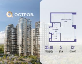 Продаётся студия от застройщика: общая площадь 35.40 м², жилая 21.40 м², кухня 5.00 м², 5, жилой квартал "Остров 12", корпус 1 (12.1 квартал) (секция 1). срок сдачи: 4-кв. 2025.