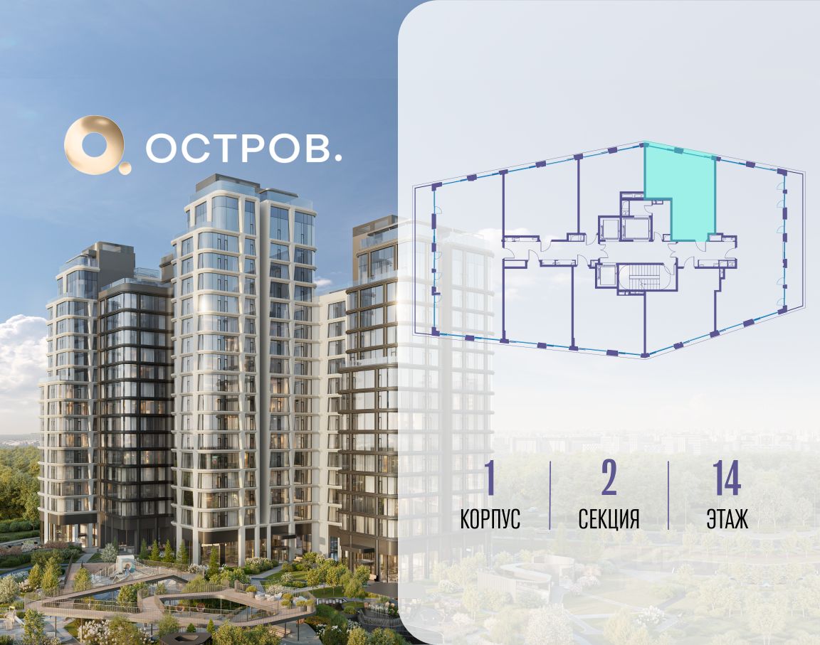 Продаётся однокомнатная квартира от застройщика: общая площадь 47.40 м², жилая 16.80 м², кухня 18.70 м², 14, жилой квартал "Остров 12", корпус 1 (12.1 квартал) (секция 2). срок сдачи: 4-кв. 2025.