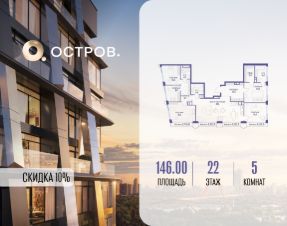 Продаётся многокомнатная квартира от застройщика: общая площадь 146.00 м², жилая 64.90 м², кухня 37.40 м², 22, жилой квартал "Остров 12", корпус 3 (12.1 квартал) (секция 1). срок сдачи: 4-кв. 2025.