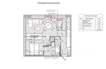 Планировочным решением предусмотрено: кухня-столовая-гостиная, мастер-спальня с собственной гардеробной и ванной, гостевой с/у.