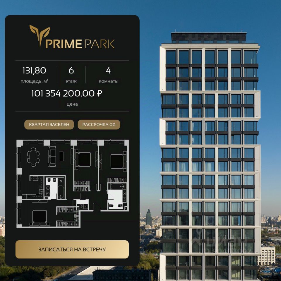 Жилой квартал Prime Park воплощает все преимущества premium-living. Престижная локация на Ленинградском проспекте, 37: - 5 мин. от Тверской улицы, Патриарших прудов и Белой площади, - 20 мин. до аэропорта "Шереметьево" или "Москва-Сити", - 4 парка — Ходынское поле, Петровский и Чапаевский парки, Березовая роща, - 4 станции метро — "ЦСКА", "Аэропорт", "Динамо" и "Петровский парк". Многократный победитель премий European Property Awards и Urban Awards, а также на протяжении пяти лет остается самым продаваемым проектом в своем сегменте. Premium-living Консьержи предугадывают желания резидентов и берут на себя выполнение практически любых бытовых задач. В квартале также есть парк-рейнджер и охрана. Для дополнительного удобства в МОПах предусмотрены почтовые комнаты, колясочные и комнаты для мытья лап домашних питомцев, комната для хранения интернет-заказов. Наличие сервисного входа для персонала позволяет разделить трафик, сохраняя приватную атмосферу в лобби. Резидентам нужно открыть только одну дверь, чтобы оказаться дома: valet-парковщики открывают дверь автомобиля и отвозят его на подземный паркинг, беллмены открывают двери при входе в башню и помогают донести вещи до квартиры, интеллектуальная система обеспечивает бесконтактный вызов лифта. Развитая инфраструктура Близость к центру Москвы, рядом крупнейший ТЦ "Авиапарк", ВТБ Арена, Мегаспорт, ВЭБ Арена, в окружении красивейших парков, включая ультрасовременный Ходынский парк площадью 25 га с панорамными качелями, набережной, фонтанами, детскими и спортивными площадками. На территории квартала предусмотрены приватный фитнес-центр с 25-метровым бассейном и спа, подземный паркинг с кладовыми, местами для хранения велосипедов, электрозарядками и детейлинг-центром для обслуживания автомобилей. На первых этажах башен расположатся кафе и рестораны, цветочный магазин, аптека, салон красоты, премиальный супермаркет и бытовые сервисы. Частный парк Общее парковое пространство квартала — 5,5 га, из них 3 га отведено под частный парк эксклюзивно для резидентов. Большой фонтан, аллеи для прогулок, крупномерные деревья, арт-инсталляции, водные глади, детские площадки и воркаут-зона создают гармоничное сочетание жизни на природе со всеми преимуществами мегаполиса. Уникальная квартирография Более 80 вариантов планировочных решений от однокомнатных квартир до двухуровневых дуплексов и пентхаусов. Панорамные окна, высокие потолки, мастер-спальни, балконы и террасы создают особенный комфорт и уют. Авторская архитектура и дизайн Четыре башни сданы, ключи выдаются в день сделки, 2 башни на этапе строительства, сдача в 2023 и 2024 гг. Уникальный архитектурный ансамбль и ландшафтный дизайн, благородные и ценные материалы в оформлении лобби, предметы искусства, арт-объекты и элементы декора, выполненные на заказ специально для Prime Park, становятся отражением яркой индивидуальности резидентов квартала.