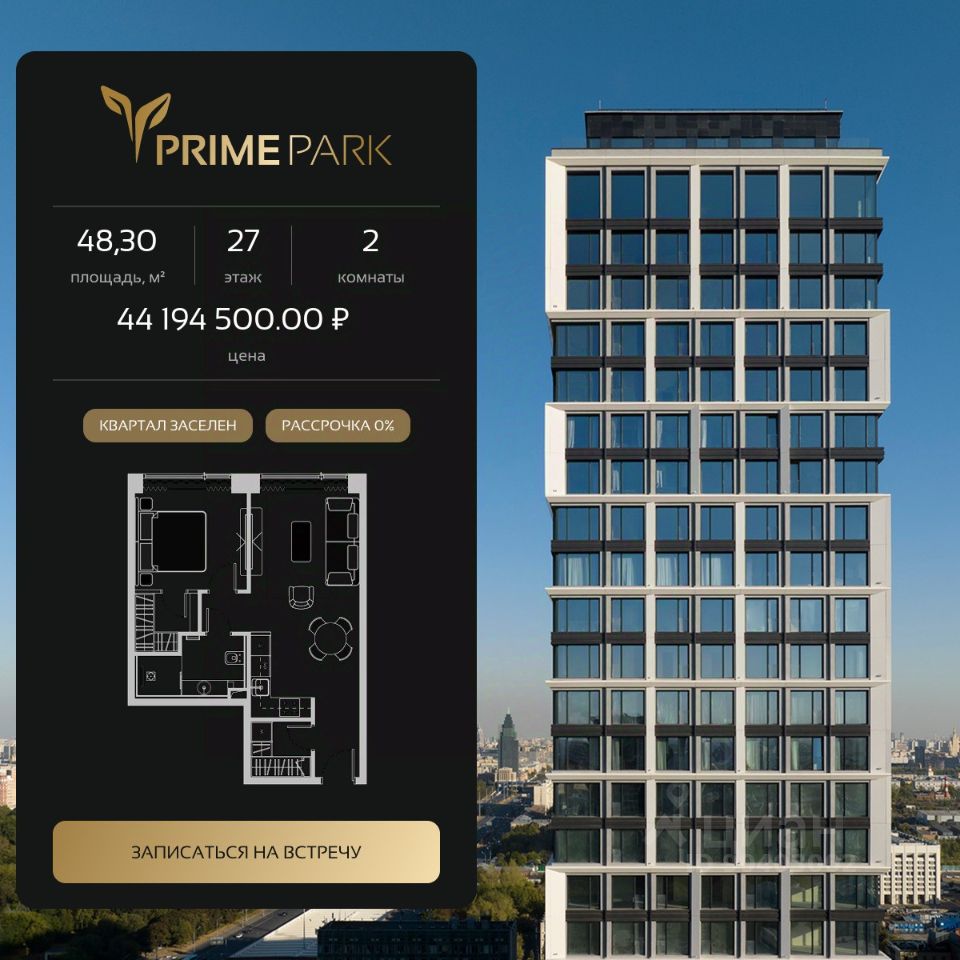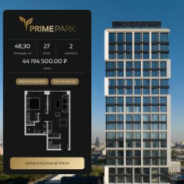 Жилой квартал Prime Park воплощает все преимущества premium-living. Престижная локация на Ленинградском проспекте, 37: - 5 мин. от Тверской улицы, Патриарших прудов и Белой площади, - 20 мин. до аэропорта "Шереметьево" или "Москва-Сити", - 4 парка — Ходынское поле, Петровский и Чапаевский парки, Березовая роща, - 4 станции метро — "ЦСКА", "Аэропорт", "Динамо" и "Петровский парк". Многократный победитель премий European Property Awards и Urban Awards, а также на протяжении пяти лет остается самым продаваемым проектом в своем сегменте. Premium-living Консьержи предугадывают желания резидентов и берут на себя выполнение практически любых бытовых задач. В квартале также есть парк-рейнджер и охрана. Для дополнительного удобства в МОПах предусмотрены почтовые комнаты, колясочные и комнаты для мытья лап домашних питомцев, комната для хранения интернет-заказов. Наличие сервисного входа для персонала позволяет разделить трафик, сохраняя приватную атмосферу в лобби. Резидентам нужно открыть только одну дверь, чтобы оказаться дома: valet-парковщики открывают дверь автомобиля и отвозят его на подземный паркинг, беллмены открывают двери при входе в башню и помогают донести вещи до квартиры, интеллектуальная система обеспечивает бесконтактный вызов лифта. Развитая инфраструктура Близость к центру Москвы, рядом крупнейший ТЦ "Авиапарк", ВТБ Арена, Мегаспорт, ВЭБ Арена, в окружении красивейших парков, включая ультрасовременный Ходынский парк площадью 25 га с панорамными качелями, набережной, фонтанами, детскими и спортивными площадками. На территории квартала предусмотрены приватный фитнес-центр с 25-метровым бассейном и спа, подземный паркинг с кладовыми, местами для хранения велосипедов, электрозарядками и детейлинг-центром для обслуживания автомобилей. На первых этажах башен расположатся кафе и рестораны, цветочный магазин, аптека, салон красоты, премиальный супермаркет и бытовые сервисы. Частный парк Общее парковое пространство квартала — 5,5 га, из них 3 га отведено под частный парк эксклюзивно для резидентов. Большой фонтан, аллеи для прогулок, крупномерные деревья, арт-инсталляции, водные глади, детские площадки и воркаут-зона создают гармоничное сочетание жизни на природе со всеми преимуществами мегаполиса. Уникальная квартирография Более 80 вариантов планировочных решений от однокомнатных квартир до двухуровневых дуплексов и пентхаусов. Панорамные окна, высокие потолки, мастер-спальни, балконы и террасы создают особенный комфорт и уют. Авторская архитектура и дизайн Четыре башни сданы, ключи выдаются в день сделки, 2 башни на этапе строительства, сдача в 2023 и 2024 гг. Уникальный архитектурный ансамбль и ландшафтный дизайн, благородные и ценные материалы в оформлении лобби, предметы искусства, арт-объекты и элементы декора, выполненные на заказ специально для Prime Park, становятся отражением яркой индивидуальности резидентов квартала.