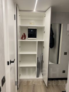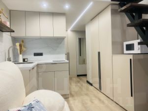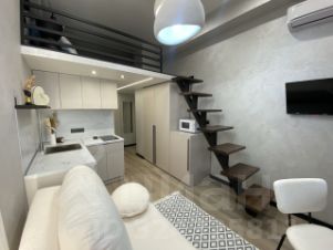Преимуществом студии является наличие большого количества мест для хранения : 2 шкафа коридор и зона гостиной, шкафы на кухне и ванной комнате, ящик для хранения диван и места хранения на антресольном этаже .