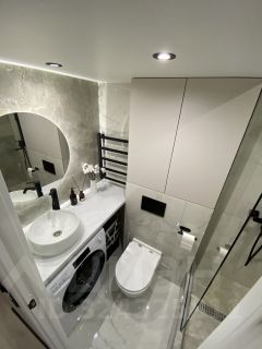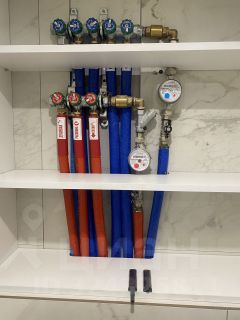 Ванная комната оборудована теплым полом и современной системой разводки воды с возможностью зонированного отключения Rehau.