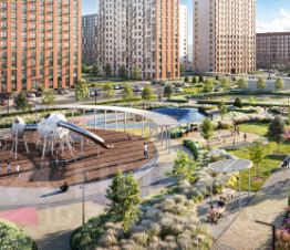 Дворы-парки закрыты от машин и посторонних. На территории — прогулочный маршрут вдоль реки Незнайка и набережная с шезлонгами и качелями для отдыха. Также здесь появится плейхаб "Незнайка на Луне", площадь для мероприятий с сухим фонтаном, летним кинотеатром и кафе.