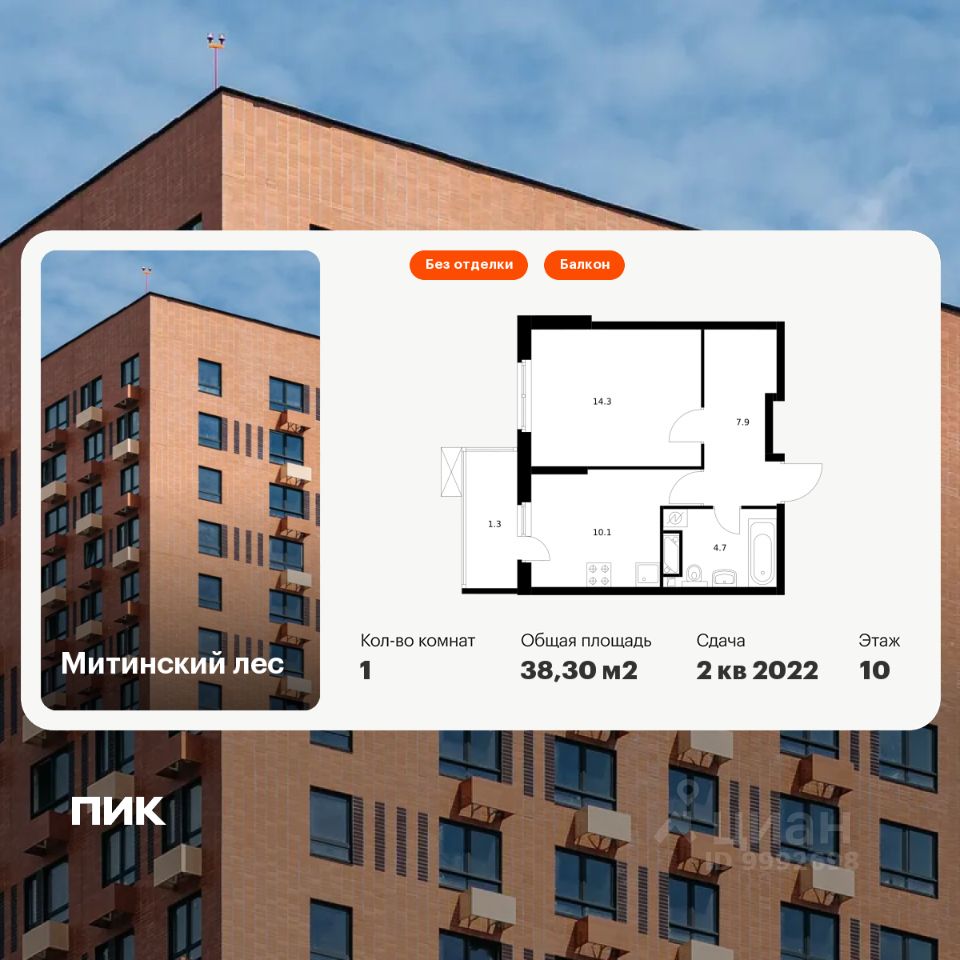 Продаётся 1-комн. квартира площадью 38,3 кв.м на 10 этаже 25 этажного дома (Корпус 15, Секция 7) проекта ПИК Митинский лес. Светлый просторный подъезд на уровне земли, функциональная планировка, большие окна, без отделки.