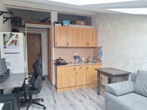 В квартире сделан современный евроремонт, поэтому можно сразу въехать и наслаждаться комфортом. Есть совмещенный санузел, что удобно для быстрого доступа. Компактная кухня площадью 3 кв. м идеально подойдет для приготовления завтраков и легких ужинов.