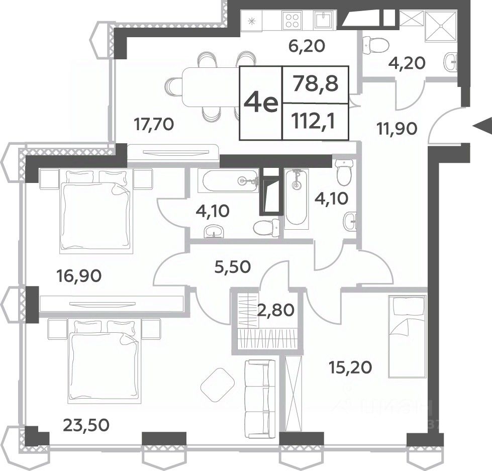 Общая площадь квартиры 110,9 м2. Свободная планировка, высокие (3.1 м) потолки и панорамные окна (высотой 2,7 м с функцией проветривания) - идеальная отправная точка для проектирования и дизайна квартиры вашей мечты. Из квартиры открываются фантастические панорамные виды на МГУ и Ботанический сад, Пойму реки Раменка. В данной планировке предусмотрено место под комфортную гардеробную комнату, так же есть возможность организовать мастер-спальню. В этой квартире восходящее солнце подарит Вам хорошее настроение уже с утра. Кроме того, восточная часть жилья считается ответственной за семейную жизнь по фэншую, так что в такой квартире будет и хорошая энергетика.