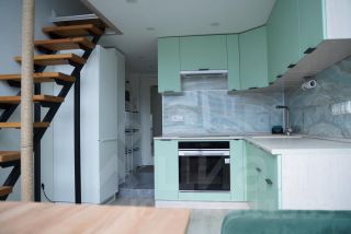 Высота антресоли увеличена, поэтому пространство ощущается свободнее, чем в аналогичных объектах.