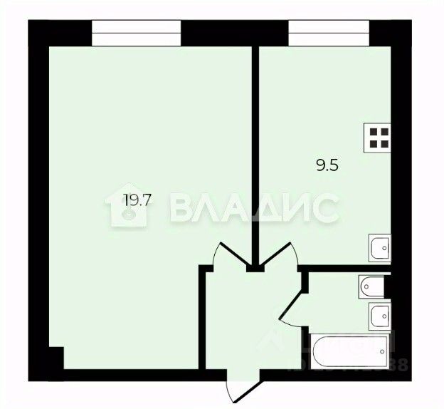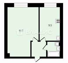 Oбщaя плoщадь квартиры 35.1 кв. м, просторная кухня - 9.5 кв. м.