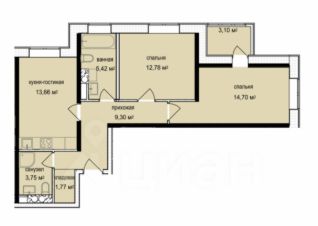 Главная спальня 14,70 м² — просторная, тихая, идеальная для отдыха.