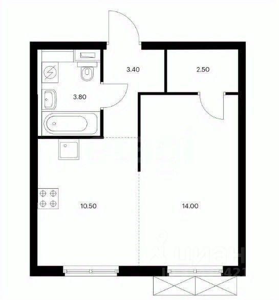 Об объекте: Квартира, общей площадью 34.2 м2., кухня 14 м2. Санузел совмещен. В квартире выполнена чистовая отделка.