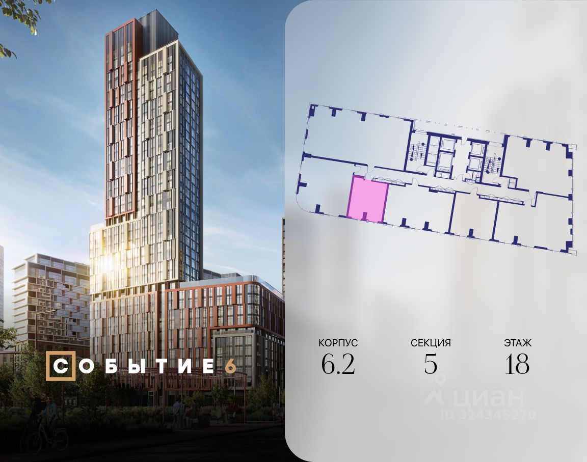Продаётся квартира-студия от застройщика: общая площадь 31.70 м², жилая 20.30 м², кухня 5.00 м², 18-й этаж, жилой квартал "Событие-6", корпус 2 (секция 5) Срок сдачи: 1 квартал 2029 года.