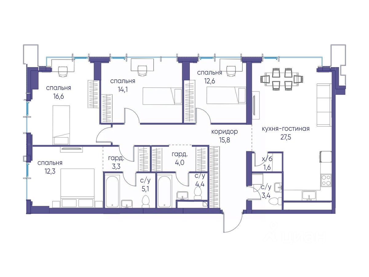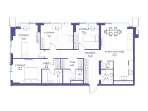 Продаётся 4-комнатная квартира от застройщика: общая площадь 120.70 м², жилая м², кухня м², 8-й этаж, жилой квартал "Событие-6", корпус 2 (секция 5) Срок сдачи: 1 квартал 2029 года.