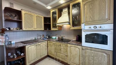 Кухня полностью оборудована — кухонный гарнитур, стол и стулья, новая техника: холодильник, электрическая плита, духовой шкаф, стиральная машина. Всё для комфортной готовки и бытовых удобств.