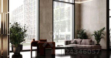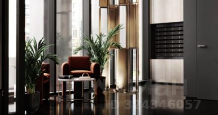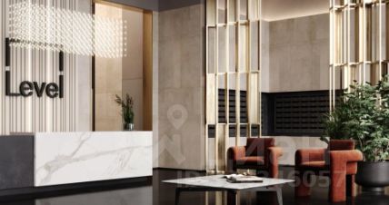лобби предусмотрены высокие потолки 4,9 метра, панорамное остекление, ресепшен и лаунж-зона. На первом