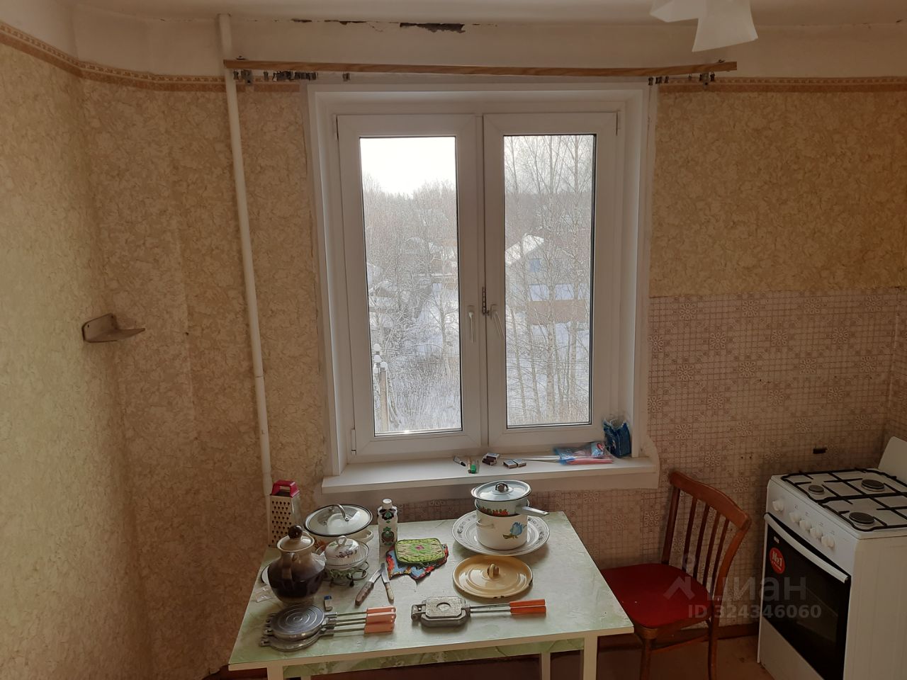 Квартира с лоджией на 4 этаже пятиэтажного панельного дома 1994 года постройки общей площадью 39.9 м.кв. (квартира 38,3 + лоджия 1,6), комната 18 м.кв. Окна выходят на частную застройку, улицу Первомайская, южная сторона - светлая. Плита газовая, отопление и водоснабжение центральное. На время профилактики горячего водоснабжения установлен бойлер. Санузел раздельный. Большая прихожая и широкий коридор. Лоджия остеклена, на кухне новое окно. Металлическая входная дверь.