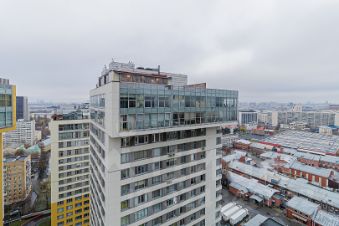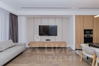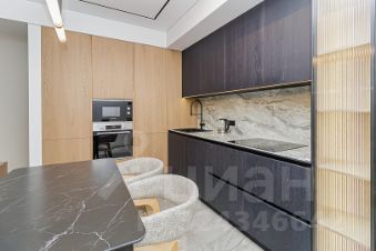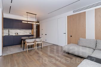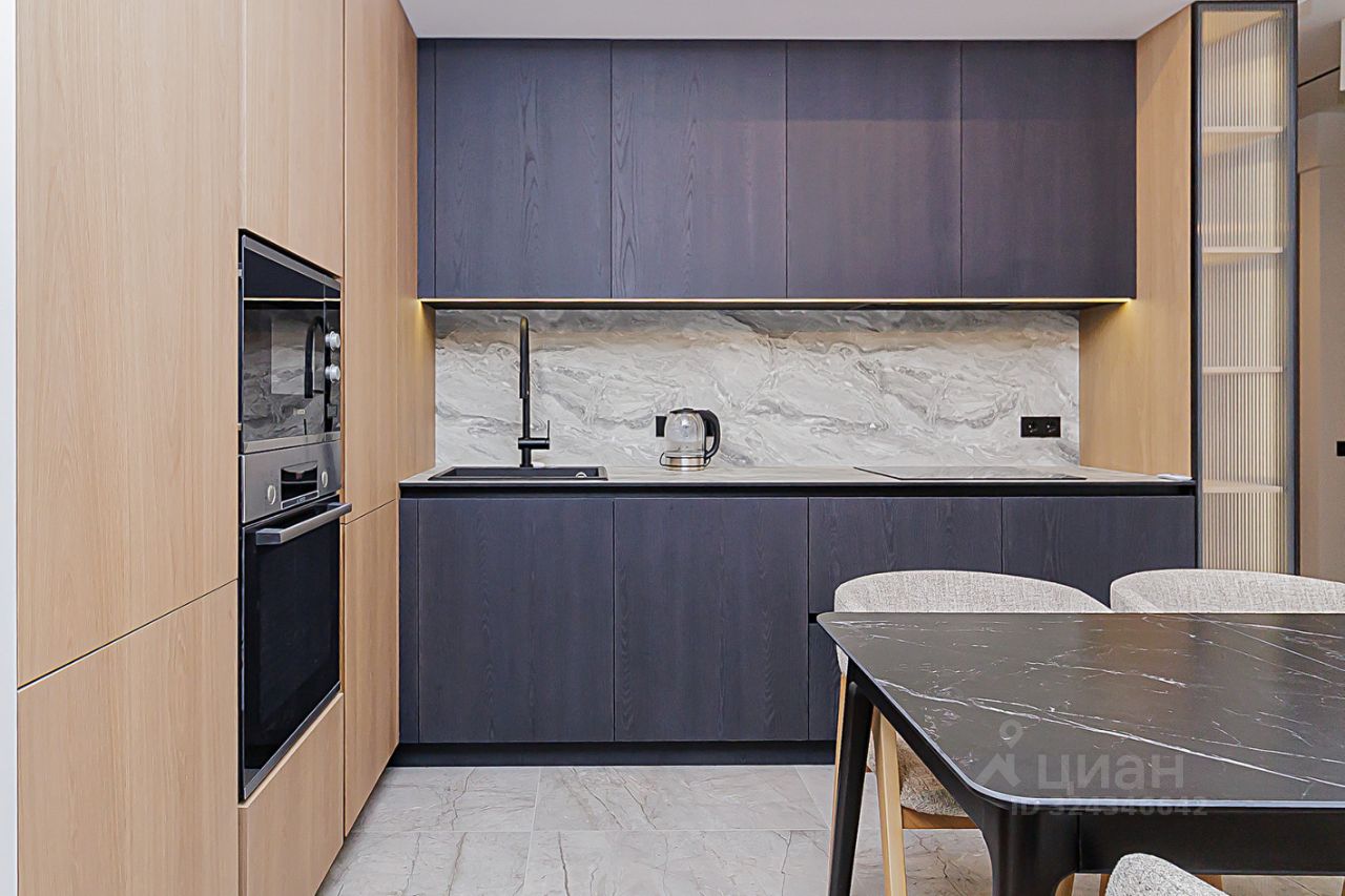 - кухня-гостиная обладает наиболее теплой атмосферой, это создается благодаря локальному, дизайнерскому освещению и оформлению, выполненного в спокойной цветовой гамме. В зоне кухни имеется вся встроенная техника, уже являющаяся стандартом в данном сегменте, а так же оснащена достаточное количество мест хранения. В зоне гостиной установлен диван для комфортного времяпрепровождения с друзьями, коллегами или же собственного. Под телевизором имеется подвесная тумба, позволяющая разместить дополнительное звуковое/игровое оборудование, а так же декор. Вместительные ящики можно использовать под любое назначение;
