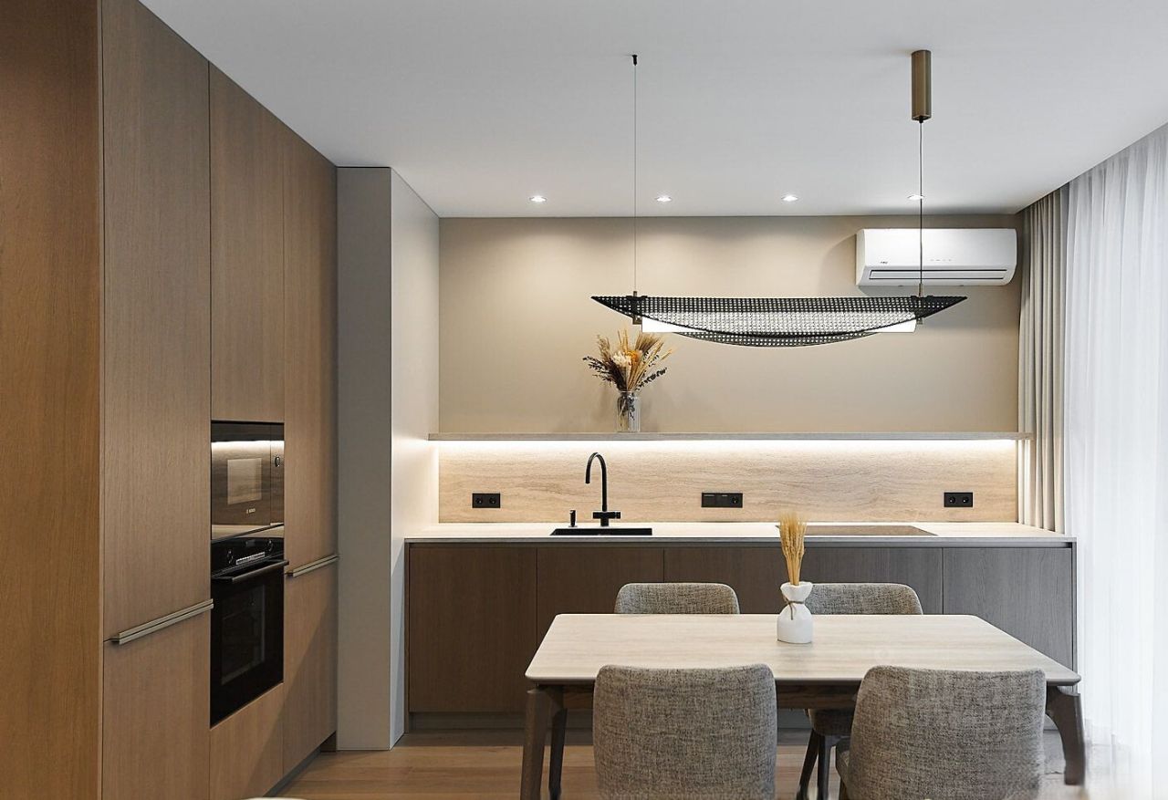 — В квартире предусмотрено несколько режимов освещения со скрытыми Led подсветками в мебели. Мастер-выключатель.