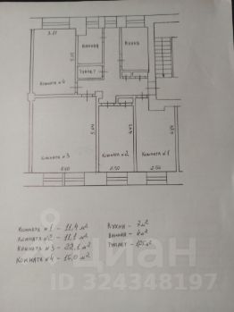4 изолированные комнаты (11,1, 11,4, 16,0 и 22,1 кв.м), кухня 7 кв.м. Окна трёх комнат выходят на улицу, окно комнаты (16,0 кв.м) и кухни во двор.