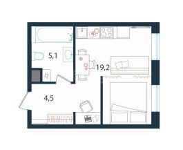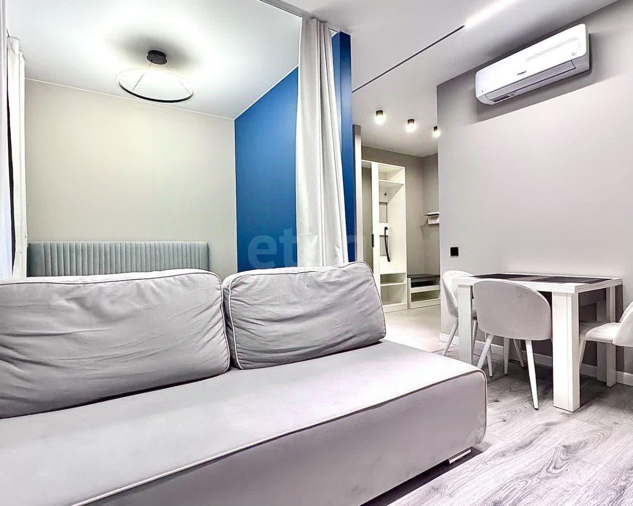 28,8 м², где гостиная зона плавно переходит в уединённую спальню, которую можно отделить лёгкими шторами — для тишины, отдыха и личного пространства. Просторный санузел — как в полноценной квартире, без компромиссов. В квартире никто не жил: вся мебель и техника — новые, в идеальном состоянии, подобраны в едином современном стиле.